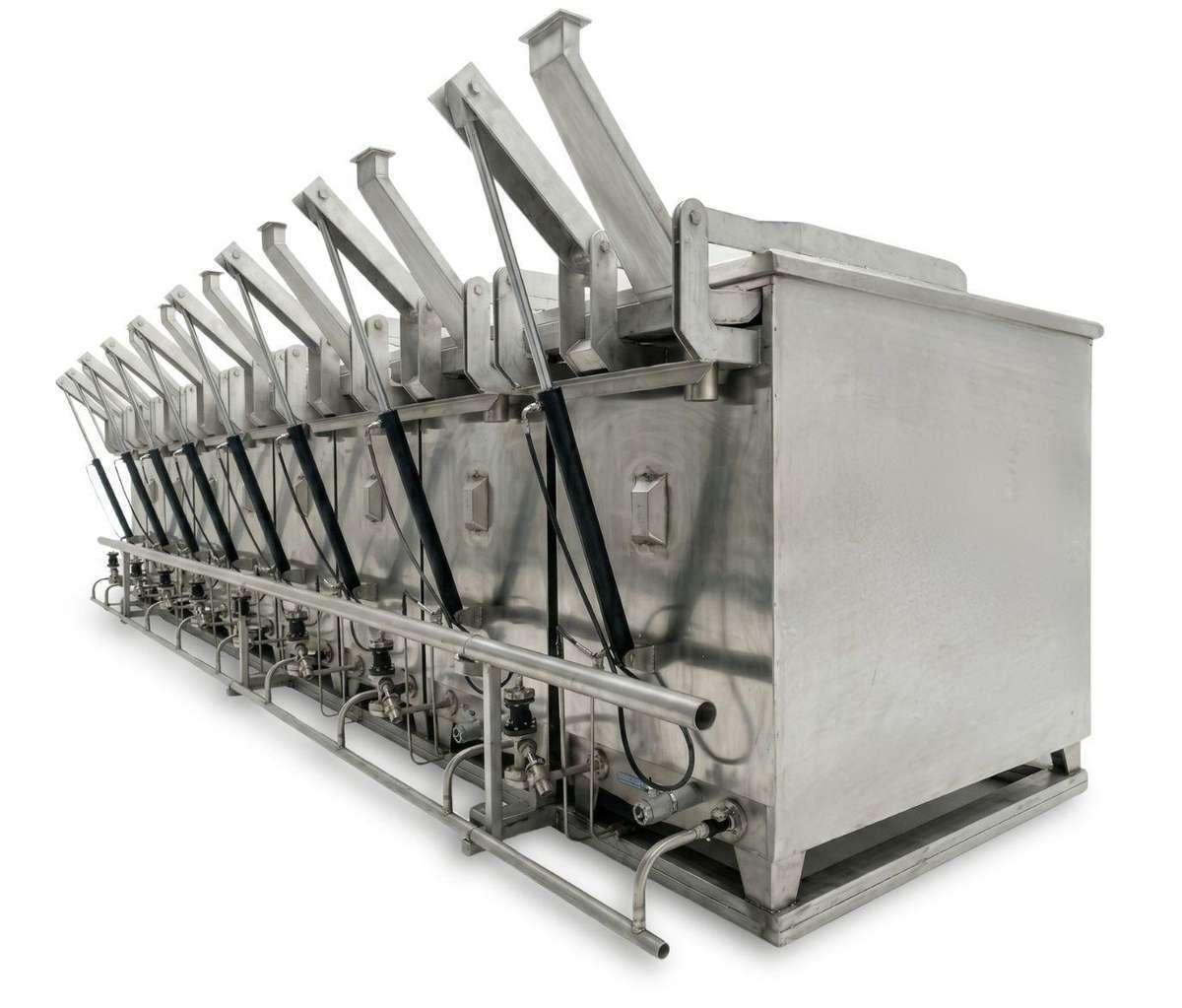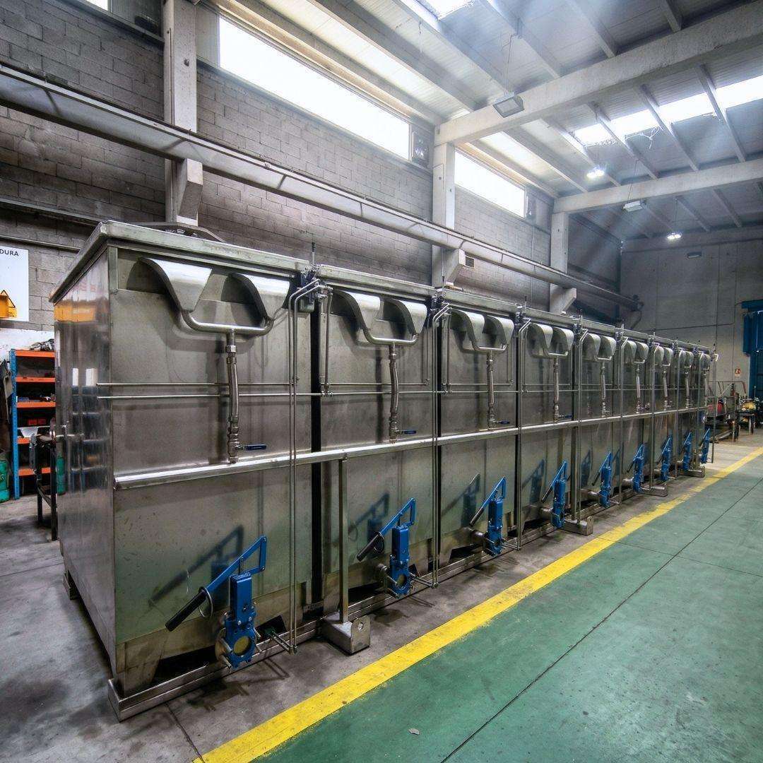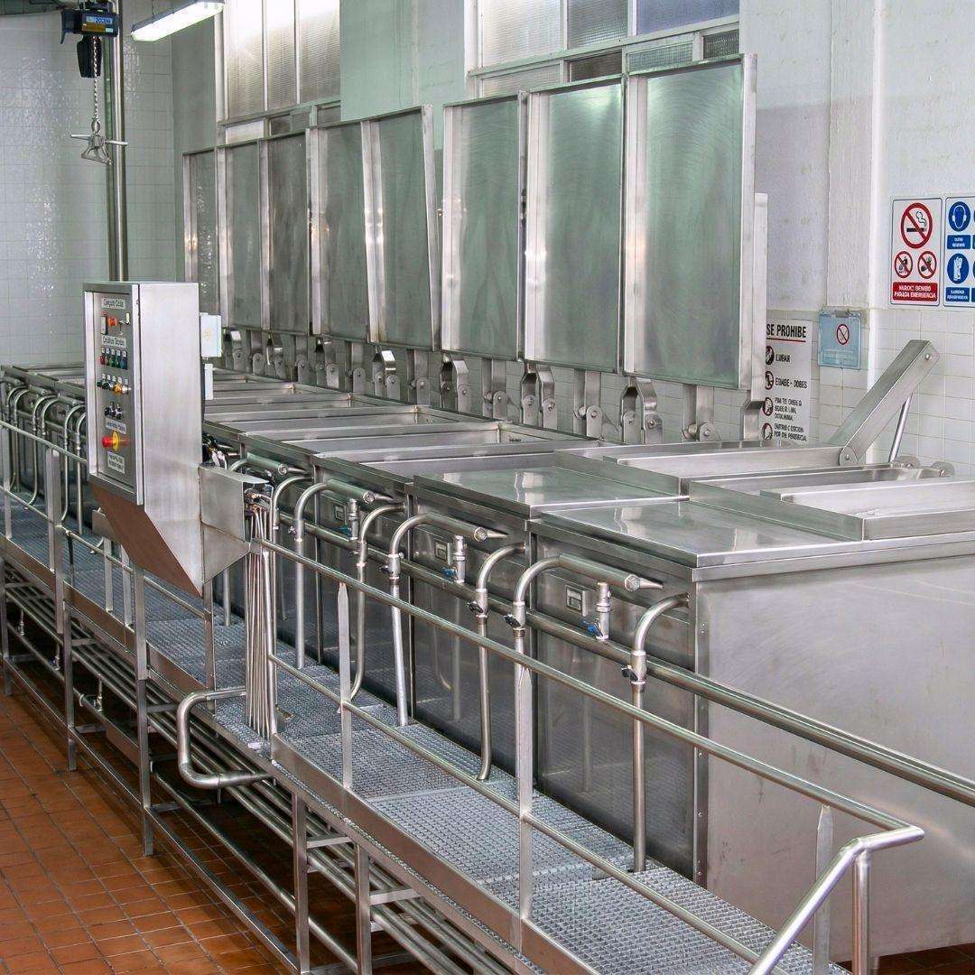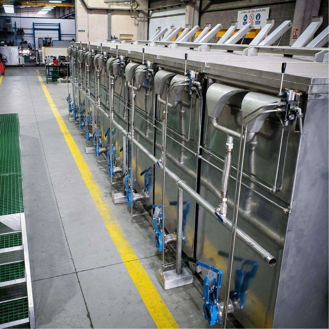 Water or brine cookers (cooking vats) for tuna and similar fish species. Cooker battery with horizontal manual opening, entirely built in AISI 316 stainless steel. Features digital or analog temperature control and indirect steam heating.