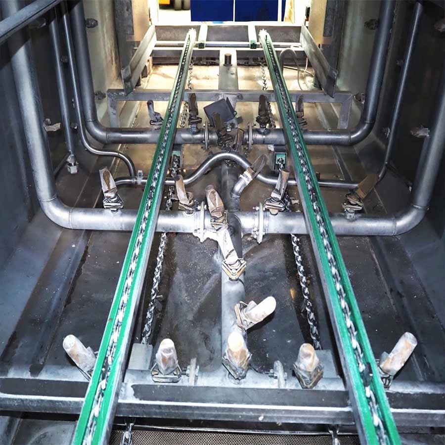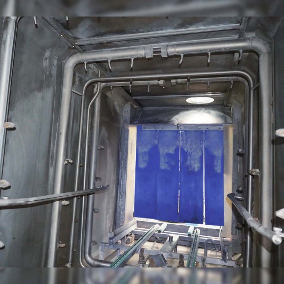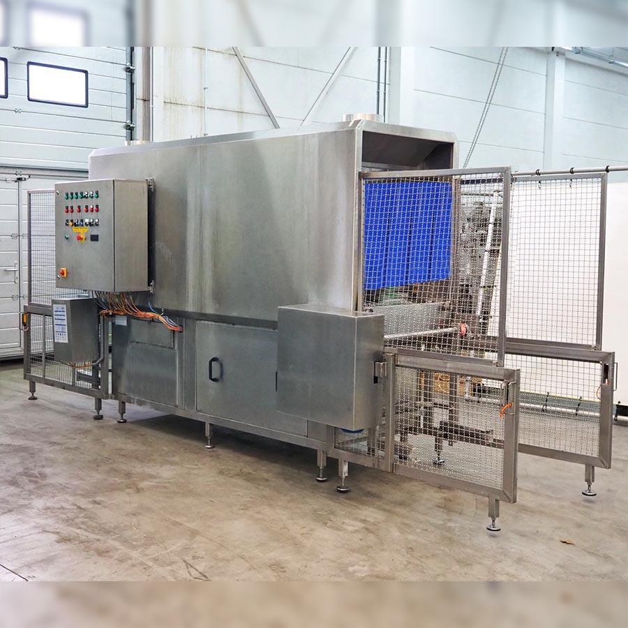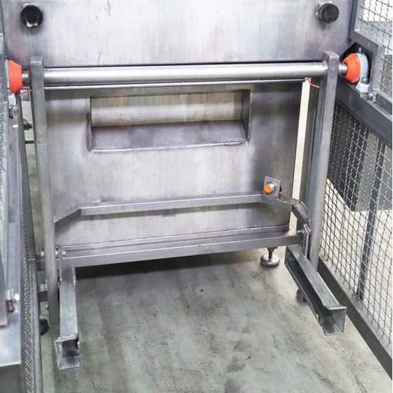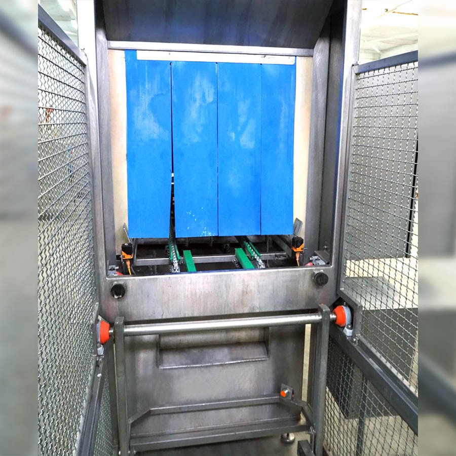 The P-M-B Hygiene Technik washer is equipped with an automatic infeed and outfeed lifter, optimizing operation times and reducing the need for manual handling. Its stainless-steel construction ensures resistance and durability in humid or corrosive environments.
