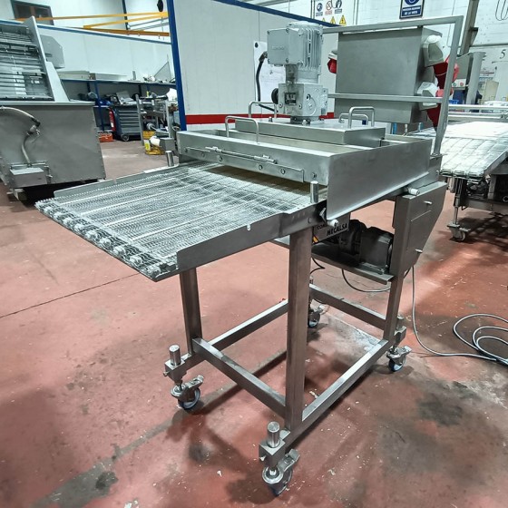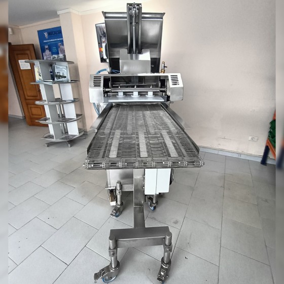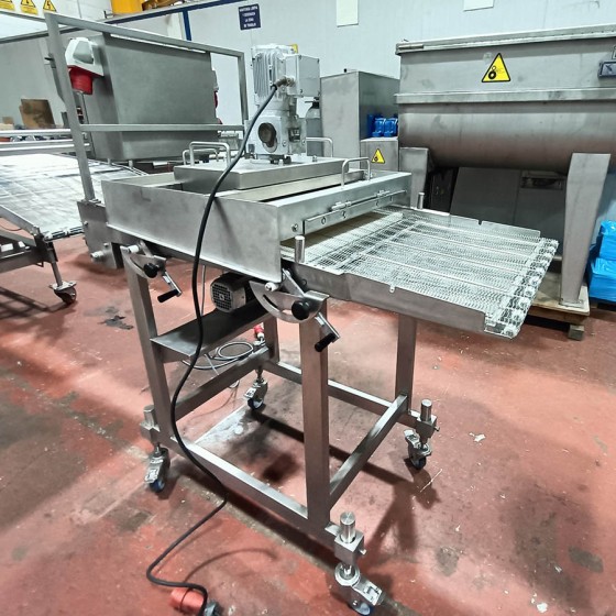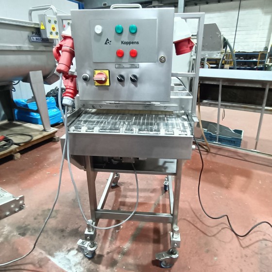 Quick view FORMING MACHINE, KOPPENS TYPE: VM 600 HS Forming machine Koppens, model: VM 600 HS Nº ID-1119 SOLD Machine number: VM 600 HS-481 Power supply: 380 V, 45.47 A, Ph 3, 50 Hz Power: 22.09 Kw Weight: 1675 Kg Conveyor width: 600 mm Dimensions: 2400 x 1300 x 2100 mm Different formats available MANUFACTURER TECHNICAL DATA COMPLETE LINE: FORMING, BREADING, BATTERING AND FRYING .. HERE Add to cart