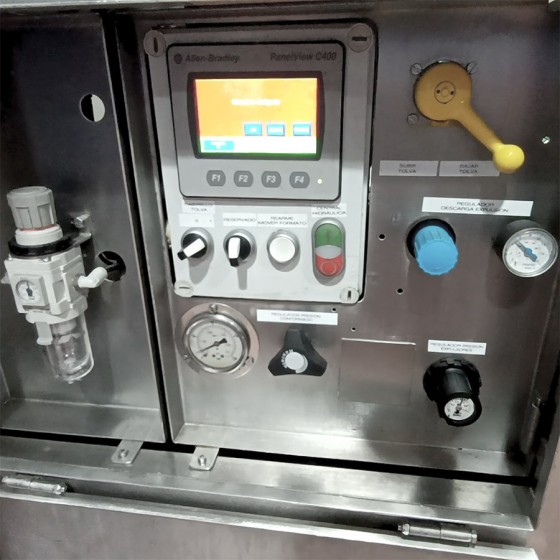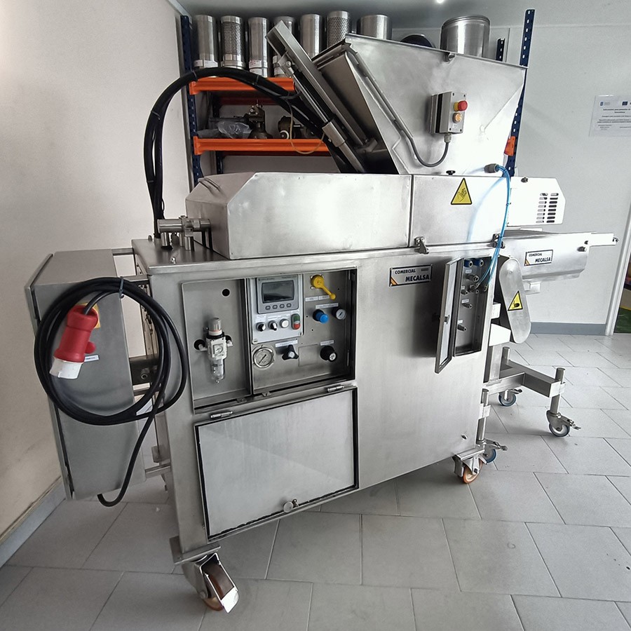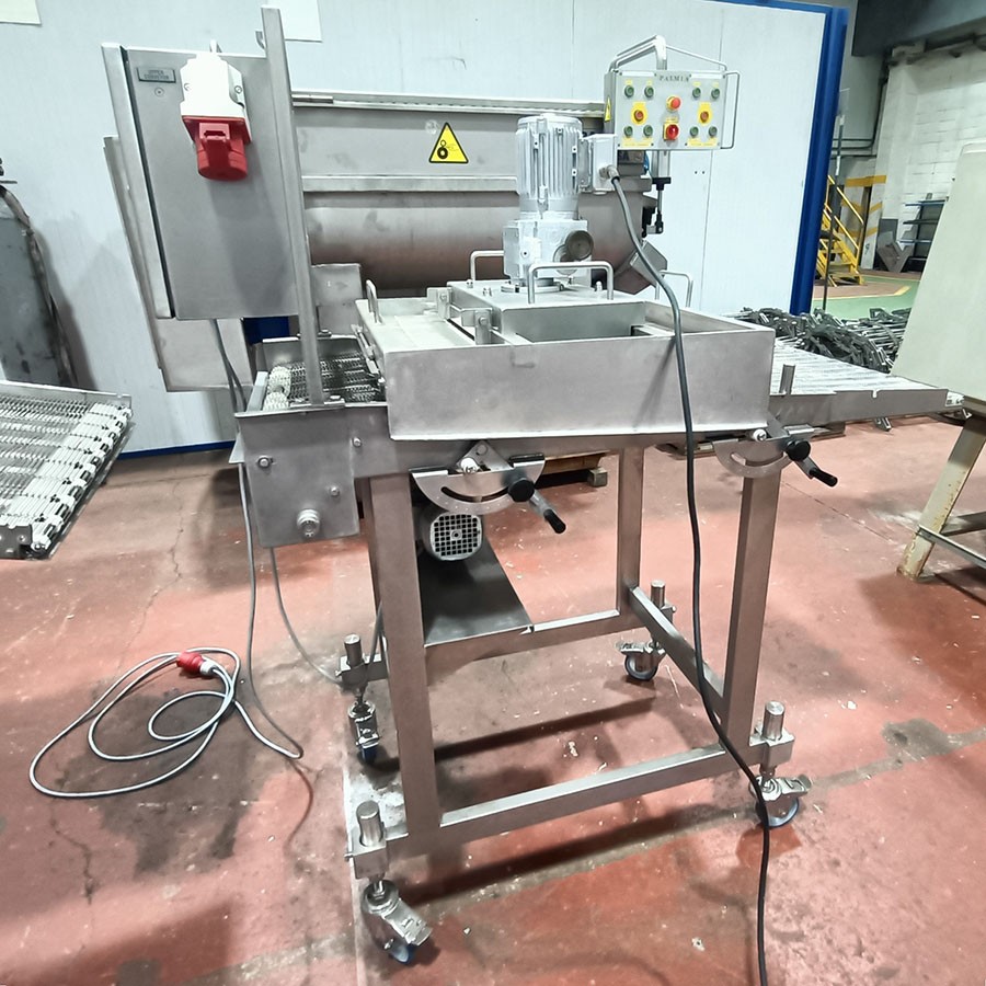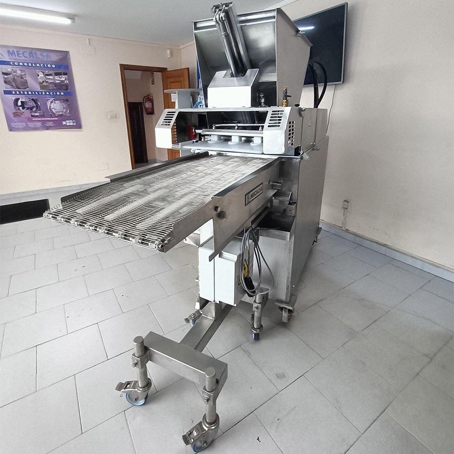 Quick view FORMING MACHINE CFS, TIPO: MLF 400 FORMING MACHINE CFS, TIPO: MLF 400 ID-2161 Serial number: 2234 Year: 2003 Power supply: 400 V, 3 Ph, 50 Hz, 17.75 A, 7.77 kW Weight: 1186 kg Hopper size: 750 x 800 x 650 mm Format: Ø 85 mm Working width: 400 mm (Stainless steel mesh) Dimensions: 2550 x 860 x 2500 mm MANUFACTURER TECHNICAL DATA Complete line composed of: Forming machine CFS MLF400, Battering,flouring machine and feed hopper MEYN.. HERE Add to cart