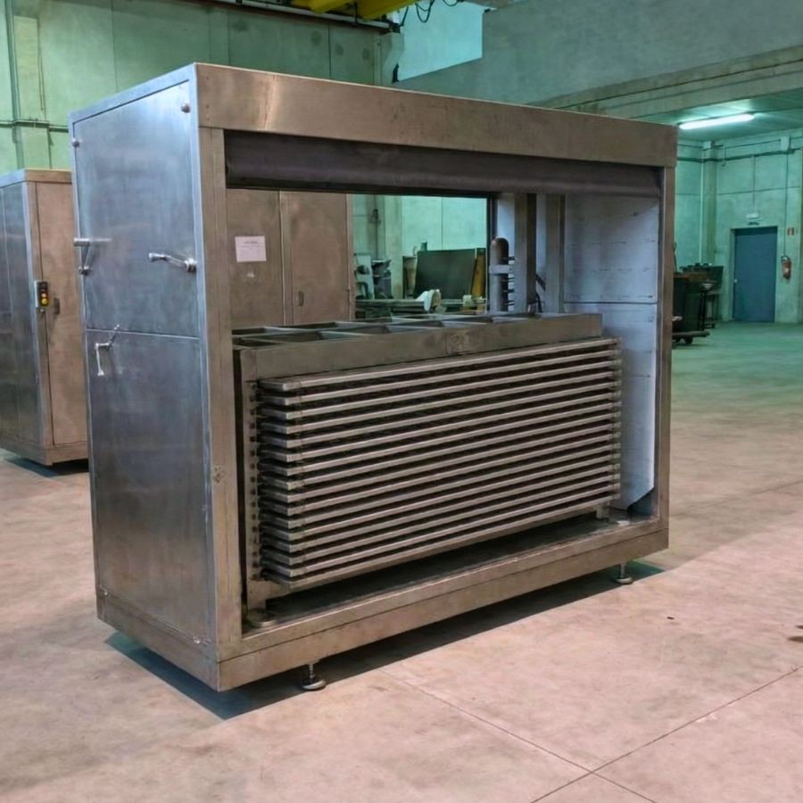 Horizontal plate freezer designed for industrial freezing processes, particularly suitable for food products requiring fast, uniform and controlled freezing. This equipment offers a large effective freezing surface and a robust construction, ideal for demanding production environments.