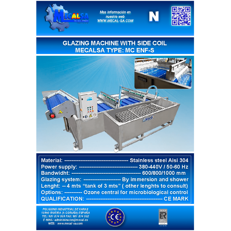 Glazing machine with autonomous cooling unit and side coil, MECALSA type: MC ENF-SF