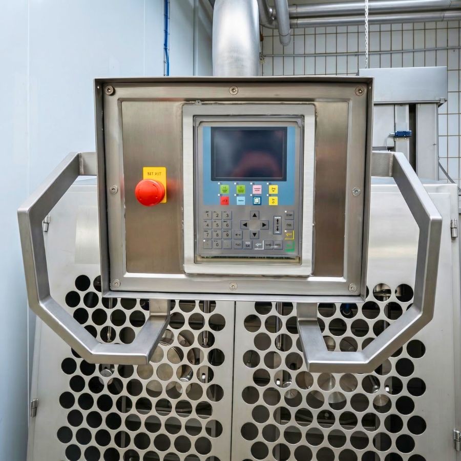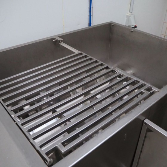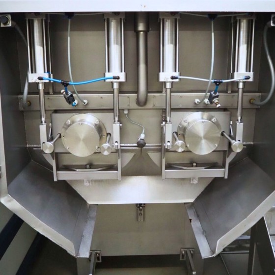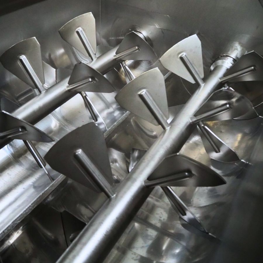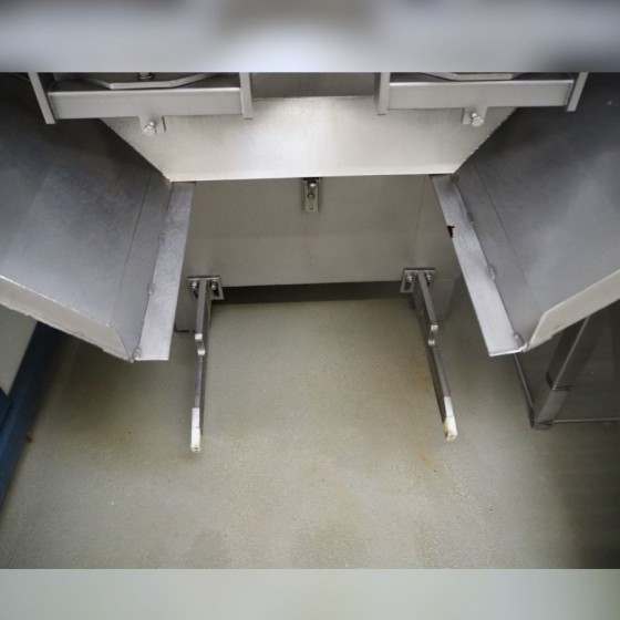 This kneading and mixing line is suitable for industrial food production processes, especially in the meat processing industry, allowing efficient raw material handling and homogeneous mixing of ingredients.