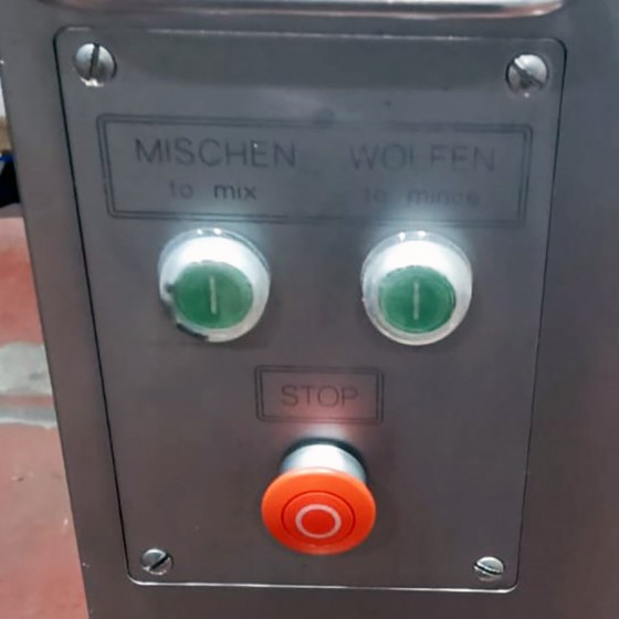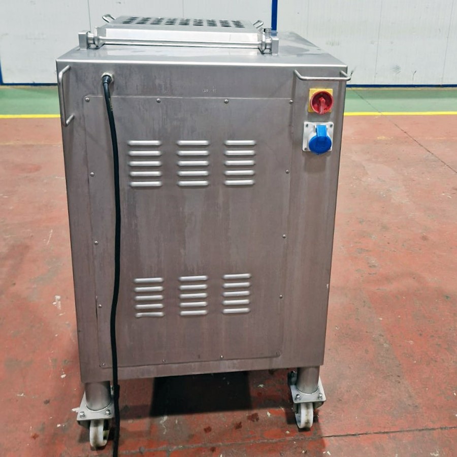 The Wolfking G 140 Grinder is a high-efficiency industrial machine, constructed from stainless steel, designed to process large volumes of meat with precision and consistency. It includes an ANDREA FERRARONI model A/F 300 loader to facilitate loading up to 200 liters, optimizing processes in the food industry.