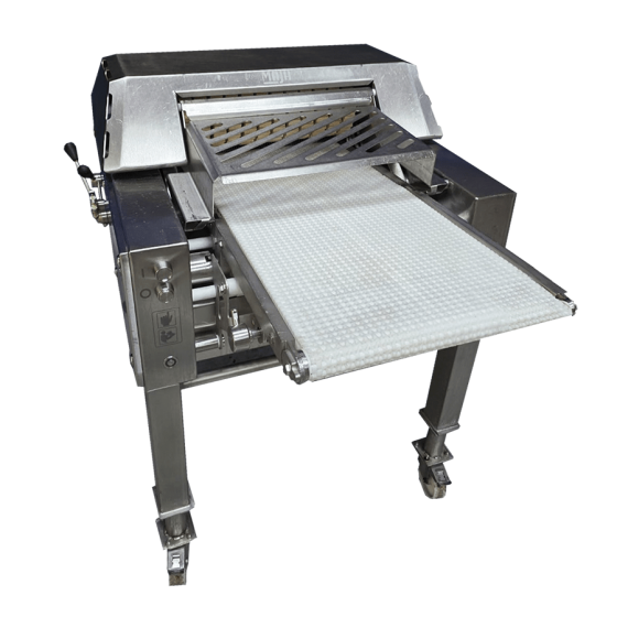 La Maja SR 500 A es una descortezadora y desolladora móvil diseñada para el procesamiento eficiente de carne. Su sistema de cinta transportadora con divisores permite un manejo óptimo del producto, garantizando una operación fluida y segura.