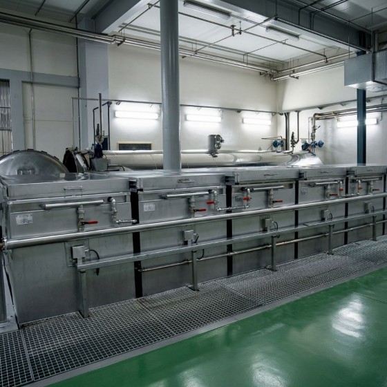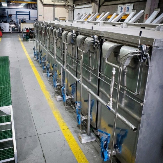 Batería de cocedores en agua o salmuera (balsinas de cocción) para pescado tipo atún y similares. Con apertura horizontal y manejo manual, estos equipos están construidos íntegramente en acero inoxidable AISI 316 y ofrecen un control preciso de la temperatura para procesos industriales exigentes.