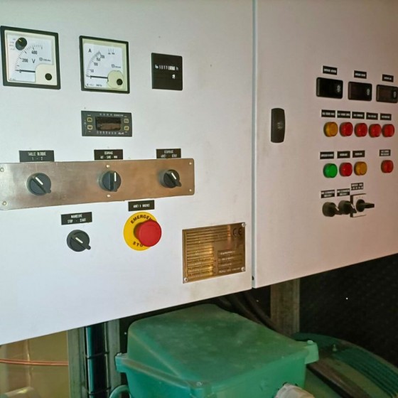 Grupo compresor de refrigeración de segunda mano para aplicaciones de congelación industrial. Equipado con compresor Bitzer modelo OSNA8571-K y refrigerante NH3, montado en armario silencioso. Diseñado para trabajar en rangos de temperatura de -35 a +35 °C.