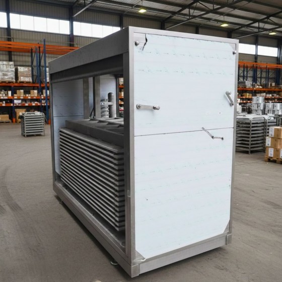 Congelador de placas horizontales diseñado para procesos de congelación industrial, especialmente indicado para productos alimentarios que requieren una congelación rápida, homogénea y controlada. Este equipo ofrece una elevada superficie útil de congelación y una construcción robusta, ideal para líneas de producción exigentes.