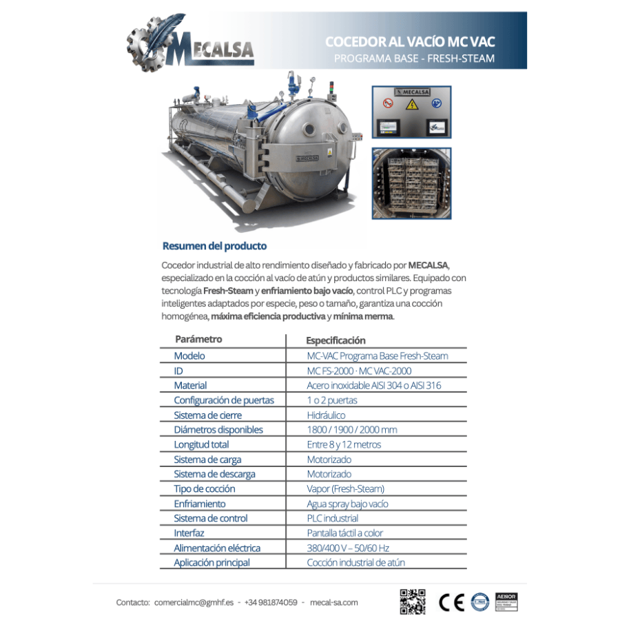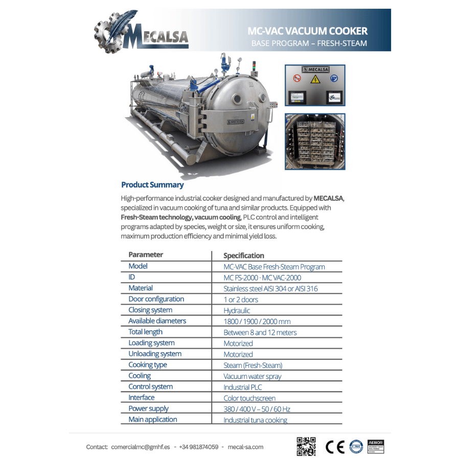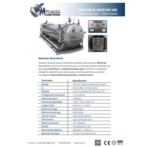 Cocedor para Atún Mecalsa Modelo MC- VAC PROGRAMA BASE FRESH-STEAM con enfriamiento bajo vacío