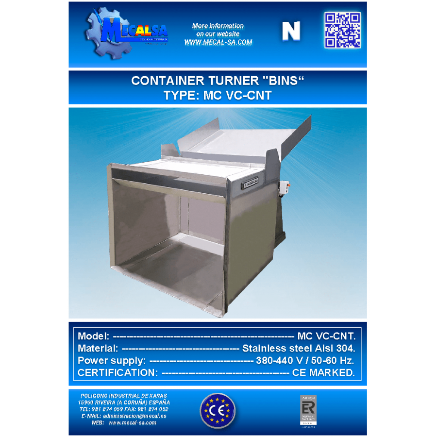 Vista rápida VOLTEADOR DE CONTENEDORES MECALSA, MODELO: MC VT - TD Volteador de contenedores Mecalsa, modelo: MC VT - TD Material: Inox Aisi 304 Voltaje - frecuencia: 380/440 V - 50/60Hz Añadir al carrito