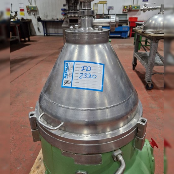 El Westfalia TA 14‑06‑506 es un separador centrífugo industrial de alto rendimiento, ideal para clarificación de líquidos en industrias alimentarias y químicas. Con una capacidad de aproximadamente 5 000 L/h y un cuenco que gira a 6 140 rpm, ofrece un rendimiento excelente en procesos de separación.